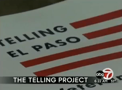 The Telling Project is in El Paso this week, working in conjunction with El Paso’s PBS television station, KCOS, to bring six vets-turned-performers onstage to share their stories with El Pasoans as part of Telling El Paso. Anchor Stephanie Valle reports. This will be the 40th production of the Telling Project since 2008. We’ll see you there!